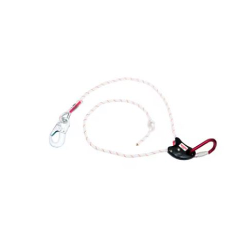 Justerbar støtteline for arbeidsposisjonering. Brukes for å etablere et arbeidsposisjoneringssystem som supplement til et fallsikringssystem. Lengden kan enkelt og presist justeres for komfortabel posisjonering. Avhengig av konfigurasjonen kan den brukes i enkel- eller dobbeltmodus. I enkelmodus kobles linen til den nedre, fremre festepunktet på selen når forankringen er plassert over brukeren. Dette gir jevn belastningsfordeling mellom beltet og benstroppene. Lengden justeres ved å betjene håndtaket mens man holder i den frie enden av tauet. I dobbeltmodus kobles linen til festepunktene på sidene av selen når brukeren arbeider med støtte under føttene. Denne tilkoblingen gir bedre belastningsfordeling på midjebeltet. Lengden justeres ved å trykke på den roterbare kammen. Støttelinen er laget av 10,5 mm nylon tau med kjerne, karabinkroker i aluminium. Sydd avslutning i en ender med plasthylse som holder hurtigkroken på plass. Vektkapasitet 140 kg.
