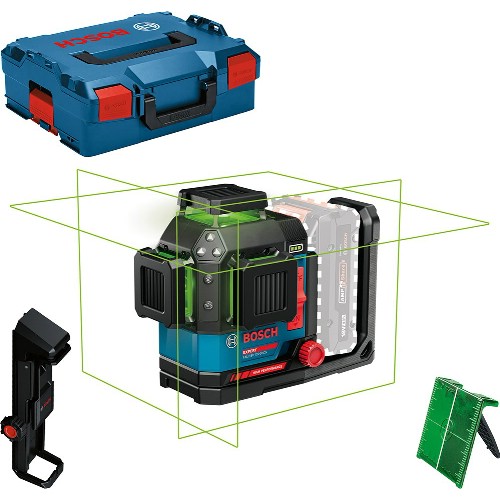 Sirkellaser med grønne laserlinjer for økt synlighet. Inngår i Bosch Expert 18 V-sortimentet. Projiserer 3x360° klare og tydelige laserlinjer. Arbeidsområde på opptil 35 m uten mottaker og opptil 120 m med mottaker (følger ikke med). Robust design med gummibelagt hus, støv- og sprutbeskyttelse i klasse IP65 for å tåle tøffe miljøer. Med finjustering av den vertikale linjen uten at referansepunktet går tapt. Selvutjevningsområde på opptil ± 4° på 3 sekunder. Triple Power-funksjon: drives av 18 V eller 12 V Li-Ion-batterier, eller 4 stk. 1,5 V LR14-batterier (C). Opptil 24 timers driftstid i 3-linjemodus med 18 V 4,0 Ah-batteri. Utstyrt med Bluetooth-modul som muliggjør trådløs fjernstyring via smarttelefon med appen Bosch Levelling Remote App. Batteriindikator. Integrert universalbrakett med sterke magneter. 1/4" og 5/8" stativgjenger. Kan brukes sammen med lasermottaker LR 7. Kompatibel med batterier og ladere i Bosch Expert 18 V-sortimentet, Bosch Professional 12 V/18 V System og AMPShare Alliance.