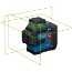 Sirkellaser med 3x360° svært synlige grønne laserlinjer, alle vinkelrett på hverandre. Laserlinjer synlig opp til 40mtr. Viser rette vinkler overalt på gulvet for legging av rett eller diagonal legging av fliser. Verifisering av korrekt gulvhøyde. Kontroll av nivå, planhet og parallellitet på vegger og gulv. Høydejusterbart veggfeste med svingbar støtteskinne. Pulsfunksjon for å utvide arbeidsrekkevidden med mottager. 5/8 gjenger for tripodfeste og 1/4 gjenger for bruk med adapter etc.