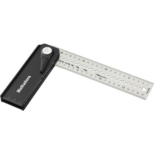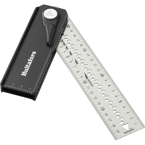 En innovativ og justerbar vinkel som også kan brukes som smygvinkel og vinkelsøker. Klingen kan roteres og har faste posisjoner for 45°, 90° og 135° (180°, 225° og 270°). Hvis klingen roteres mer enn 180°, kan du også bruke den andre siden av anlegget, der det ikke er spor som for eksempel tynne metalldeler kan gli inn i. Når du flytter spaken, kan den også brukes som smygvinkel for å kopiere enhver vinkel mellom 0 og 270 grader. Spaken kan også brukes til å låse den i valgfri vinkel. Det er skala på begge sider av klingen, samt håndtak for å måle vinkler mellom 0 og 90 grader. Vinkelen kan også foldes sammen, noe som gjør den enkel å bære med seg i lommen på arbeidsbuksen. Klingen er 45 mm bred for å lette arbeid med standard stenderdimensjoner og har en midtlinje som gjør det raskt og enkelt å merke begge sidene av en stender. Klingen har også rissespor med 5 mm avstand, som kan brukes til å streke opp eller skjære en linje parallelt langs en kant. Et robust ledd og en 25 cm lang klinge av 1 mm tykt rustfritt stål gir et svært holdbart design som tåler tøffe arbeidsmiljøer. Nøye utvalgte materialer og produksjonsteknikker, slik som CNC-frest anslag og klinge skåret ut med laser, gir stor nøyaktighet