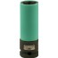 Lang hjulmutterpipe med 1/2" firkantfeste og sekskantet pipefeste. Power-versjon for bruk med slagmaskiner. Laget av høykvalitets stållegering med hardhet 40-48 HRC. Svart oksidert overflate. Utstyrt med plasthylse på utsiden for å beskytte felgen. Innsiden har også et plastbelegg for å beskytte hjulmutrene.