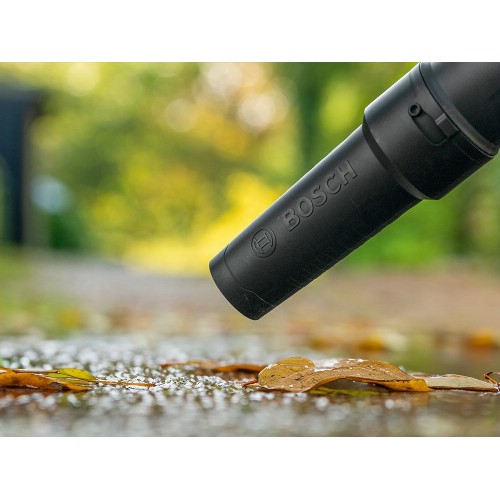 Kraftig løvblåser 18 V Li-Ion med børsteløs, kraftig motor med aksialvifte. Leverer 800 m³/t luftstrøm ved en hastighet på opptil 200 km/t. Variabelt hastighetsregulering gir arbeid med full kontroll, velg optimal effekt, lydnivå og driftstid avhengig av oppgaven. Komfort under arbeidet med låseknapp for konstant bruk. Godt balansert og ergonomisk design med lav vekt gir mindre anstrengende arbeid og øker sikkerheten. Robust vri- og klikkmunnstykke som enkelt monteres og raskt tas av for kompakt oppbevaring. Kompatibel med alle batterier og ladere i Bosch Professional 18 V-systemet.